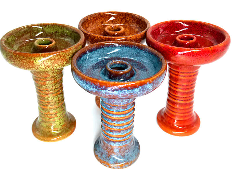 Современные керамические чаши выглядят совсем не так, как 5-7 лет назад. Раньше это была полностью глазурованная чашка из специального материала, обожженного в печи. Она неравномерно распределяла жар и считалась одной из худших для кальяна. Однако современная индустрия позволила создать качественный продукт. По сути, это такая же глиняная чаша, только имеющая слой глазури. Как правило, в месте, где кладется табак. Даже если чаша полностью покрыта глазурью, внутри находится качественная глина. Такая конструкция имеет свои преимущества и недостатки.
